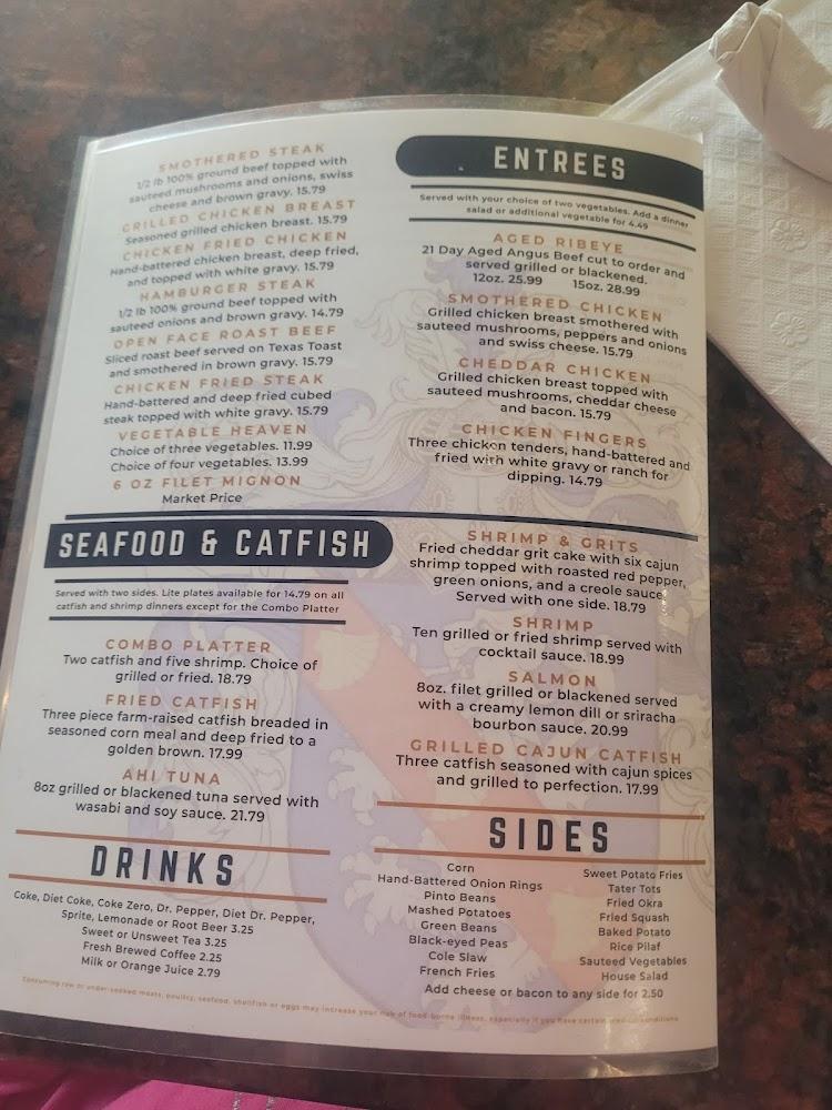 Seafood options, especially the grilled cajun catfish and ahi tuna, capture the essence of nearby lakes and rivers. The drink selection ranges from refreshing lemonade to craft beers, ideal for pairing with your meal. Desserts provide a sweet finish, making a meal memorable. The menu successfully captures the spirit of Conway while bringing something unique to diners.